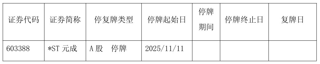 3、关于公司股票触及交易类强制退市的风险提示暨公司股票停牌的公告,元成股份,2025-11-10