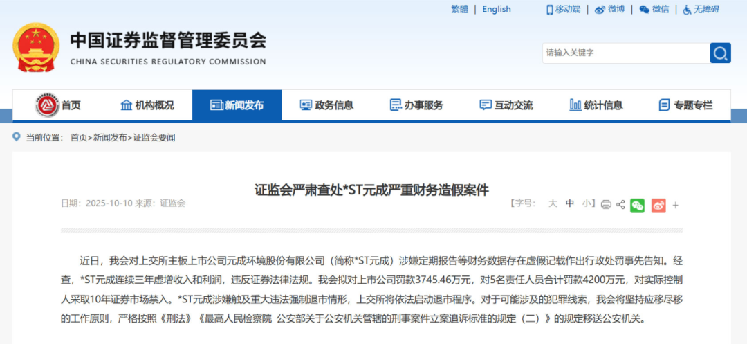 6、连续三年财务造假,实控人罚款2800万,环保企业或强制退市!环保圈,2025-10-13