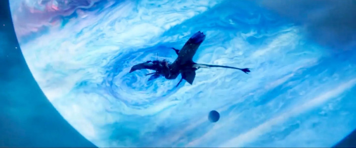 《阿凡达3》主打的色彩是深蓝:大海的颜色。大海也是剧情中正义一方的主要战场。以深蓝做背景,夹杂着通天的火光、七色霞光的穿插,五彩斑斓的大杂烩,让每个观众感受到此时此刻的自己是多么的渺小。