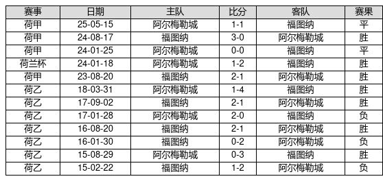 福图纳 VS 阿尔梅勒城两队近10年的交战次数为12场,福图纳7胜2平3负,赢球概率为58.3%,平局概率为16.7%,输球概率为25.0%。