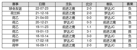 罗达JC VS 前进之鹰两队近10年的交战次数为9场,罗达JC2胜2平5负,赢球概率为22.2%,平局概率为22.2%,输球概率为55.6%。