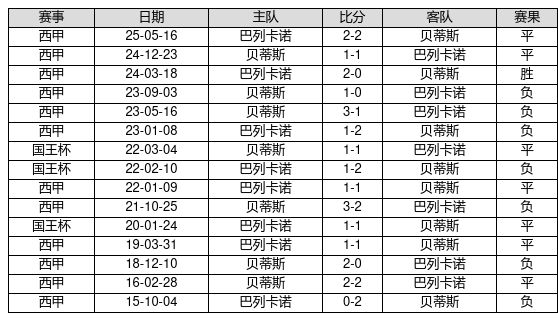 巴列卡诺 VS 贝蒂斯两队近10年的交战次数为15场,巴列卡诺1胜7平7负,赢球概率为6.7%,平局概率为46.7%,输球概率为46.7%。