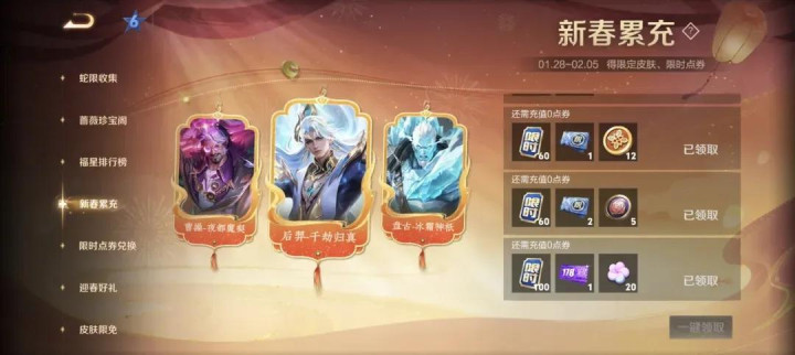注:以下均为历史活动,并不代表26年春节内容,一切要以官方发布为准!