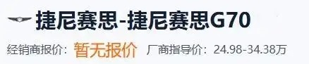 同样的例子还有捷尼赛思G70,该车定位豪华B级车,售价24.98-34.38万元,比很多已经国产了的同级豪华B级车还要更便宜,甚至比一些国产了的豪华A级车也要更便宜一些。